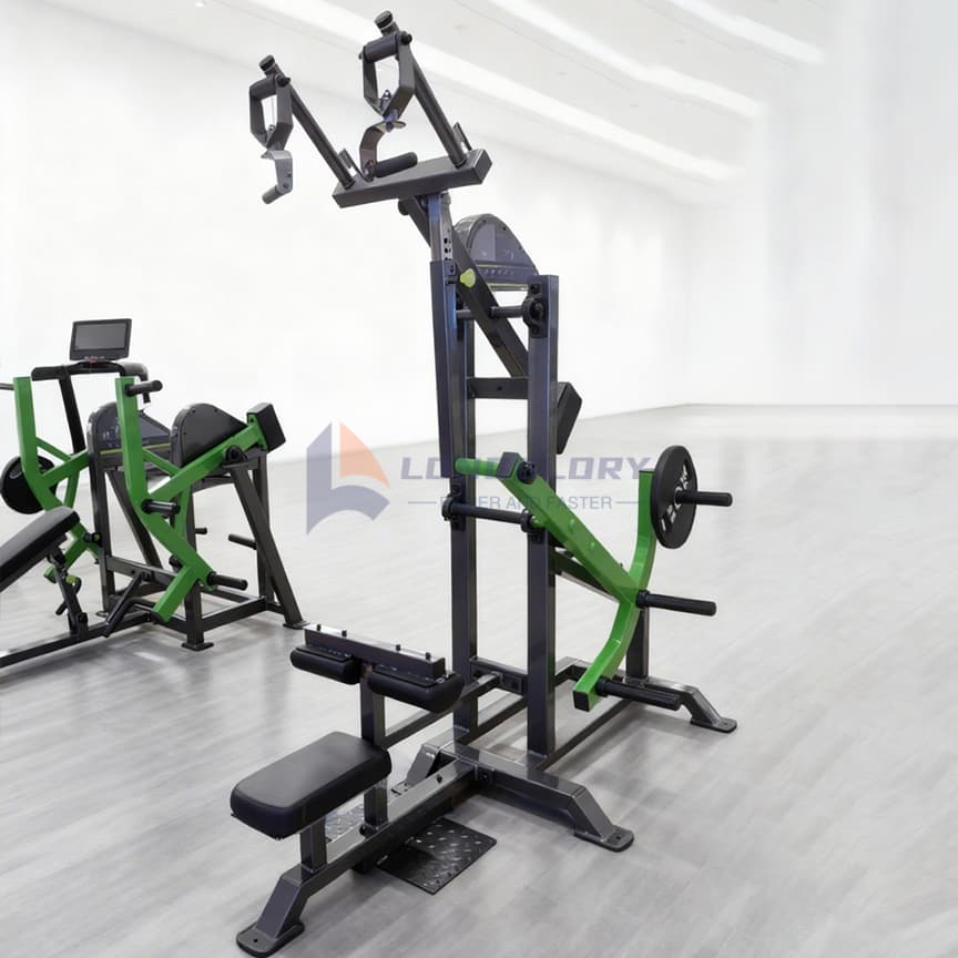 Commercial Lat Pulldown makinak bizkarreko entrenamendurako euskarri indartsua eskaintzen du diseinu ergonomiko bikainarekin. Merkataritza-mailako altzairuzko egitura erresistentea duena, Commercial Lat Pulldown honek epe luzerako iraunkortasuna eta errendimenduaren egonkortasuna bermatzen ditu maiztasun handiko gimnasioaren erabileran. Izterreko kuxin erregulagarriek erabiltzaileak babesten dituzte beherako mugimenduetan, eta kalitate handiko txirrika-kableen trakzio leuna eskaintzen dute entrenamendu eraginkor eta erosoetarako.