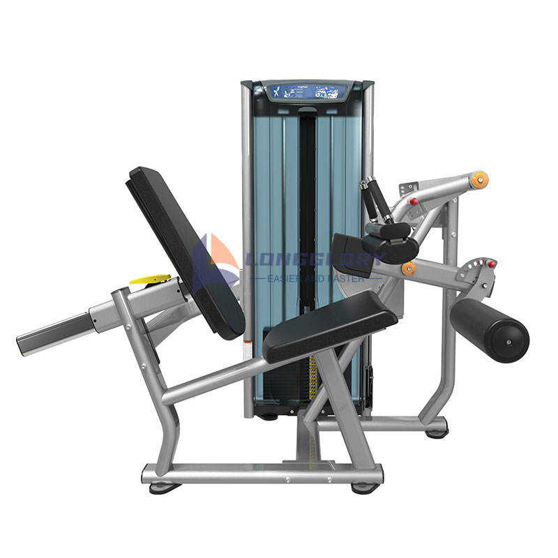 -AEseritako hanka kurbaren makinaPosizio finkoko fitness makina da hankako flexiorako eta eserita dagoen posizioan luzatzeko diseinatua, batez ere kuadrizepsekin zuzenduta.
