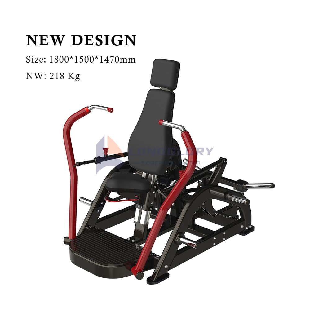 Altzairuzko bularreko prentsa makinak mugimendu leuna eta kontrolatua eskaintzen du bularraldea, sorbaldak eta tricepak modu eraginkorrean zuzentzeko. Altzairuzko marko sendoak iraunkortasuna eta egonkortasuna bermatzen ditu, aproposa daitezen gimnasioak eta fitness estudioak.